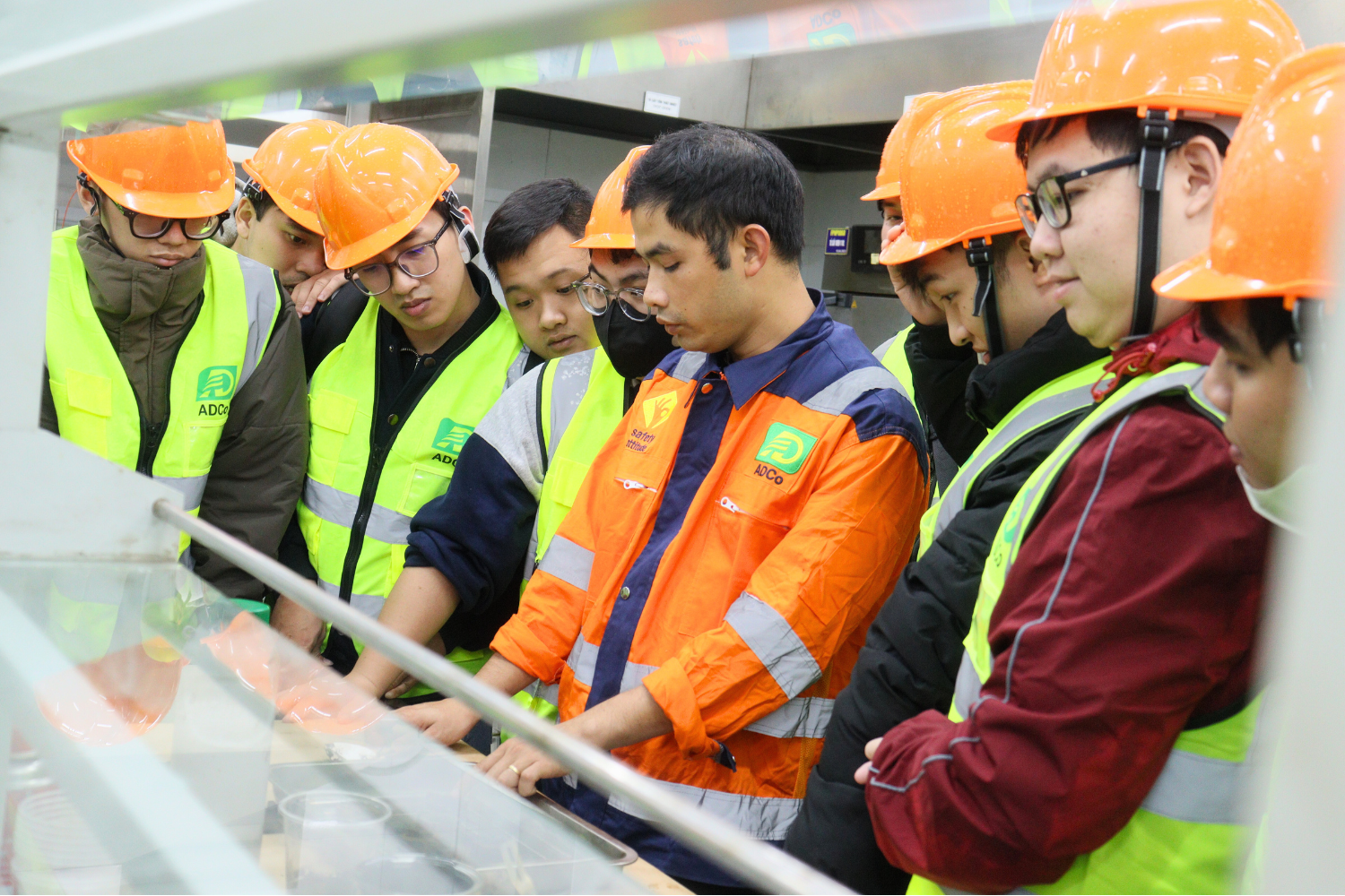 Phần hấp dẫn nhất trong chuyến tham quan chính là khi sinh viên được chứng kiến quy trình sản xuất nhựa đường Polime và nhũ tương nhựa đường ngay tại nhà máy, cùng quy trình vận hành nghiêm ngặt đảm bảo chất lượng sản phẩm đồng thời đạt các tiêu chuẩn Việt nam và các tiêu chuẩn kỹ thuật của nội bộ Tập đoàn TIPCO/COLAS. Sự hướng dẫn tận tình của đội ngũ kỹ thuật ADCo cùng tinh thần ham học hỏi của sinh viên đã mang đến một không khí học tập sôi nổi và hứng khởi.